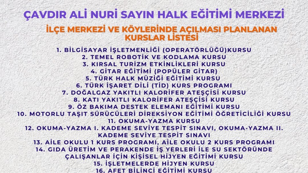 ÇAVDIR ALİ NURİ SAYIN HALK EĞİTİMİ MERKEZİ 2025 YILI HAYAT BOYU...